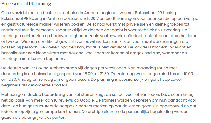 Trots nieuws! De website Alleboksscholen.nl heeft onderzoek gedaan naar de beste boksscholen in de regio, en natuurlijk staan wij in de lijst! Sterker nog, ze beginnen hun overzicht zelfs met PR-Boxing. (vast niet bewust, haha!)